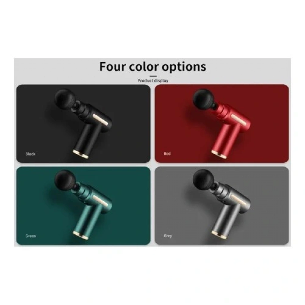 Mini Masaj Aleti Şarj ,Edilebilir 4 Başlıklı Titreşimli Masaj TabancasıMini masaj aleti, kompakt tasarımı ve güçlü titreşim teknolojisi sayesinde kas yorgunluğunu gidermek, gerginliği azaltmak ve rahatlama sağlamak için ideal bir cihazdır. 4 farklı masaj başlığı ile vücudun farklı bölgelerine uyum sağlayarak etkili bir masaj deneyimi sunar. Hafif ve taşınabilir yapısı ile evde, ofiste, spor sonrasında veya seyahatte kolayca kullanılabilir.Sessiz çalışma özelliği sayesinde dikkat dağıtmadan rahatlamanıza yardımcı olur. Şarj edilebilir kablosuz tasarımı ise kullanım özgürlüğü sağlar.Ürün Özellikleri:4 farklı masaj başlığı: Her bölgeye özel masaj desteği sağlar.Titreşim teknolojisi: Kas ağrılarını azaltır, dolaşımı artırır ve gerginliği giderir.Şarj edilebilir tasarım: Kablosuz kullanım sunar, uzun süreli performans sağlar.Kompakt ve hafif: Kolay taşınabilir, her ortamda kullanılabilir.Sessiz çalışma: Konforlu bir masaj deneyimi sunar.Renk seçenekleri: Siyah, kırmızı, yeşil, griAvantajları:Kas ağrılarını hafifletir ve vücudu rahatlatır.Spor sonrası toparlanmayı destekler.Günlük yaşamda gerginliği azaltır.Ergonomik tasarımı sayesinde kolay kavrama ve kullanım sağlar.Kullanım Alanları:Spor sonrası kas gevşetmeGünlük yaşamda rahatlatıcı masajOfiste uzun süreli oturma sonrası oluşan gerginlikSeyahat sırasında taşınabilir masaj çözümüMini masaj tabancası ile kaslarınızı rahatlatın, kendinizi şımartın ve konforu her an yanınızda hissedin!