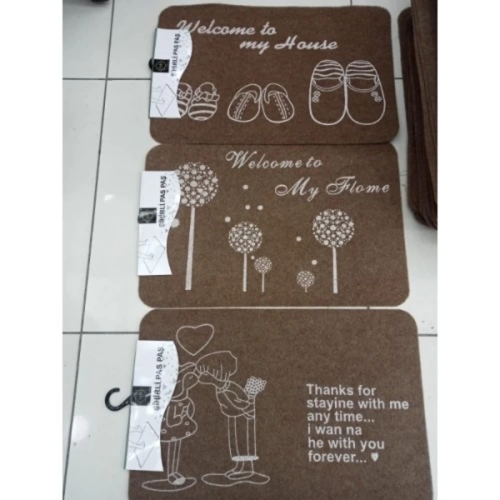 SÜPER EMİCİ KAPI PASPASIÜrün ÖzellikleriÜzerinde farklı yazılar ve sevimli desenler bulunan modern ve estetik bir görünüm sunar. Örneğin, "Welcome to my House", "Welcome to my Home" ve romantik temalı tasarımlar yer alır.Dayanıklı ve uzun ömürlü malzemelerden üretilmiştir. Kir tutmayan ve kolay temizlenebilen bir yüzeye sahiptir. Standart giriş kapısı ölçülerine uygundur.Toprak tonlarında tasarlanmış olup, her türlü dekorasyon tarzına uyum sağlar.Zeminlerde kaymayı önleyen bir tabana sahiptir ve kiri etkili bir şekilde yakalayarak evinizin temiz kalmasını sağlar. Ev girişleri, balkon kapıları ve bahçe kapıları gibi çeşitli mekanlarda kullanılabilir.İç veya dış mekan kullanımı için uygundur. Bu kapı paspasları, dekoratif tasarımlarıyla evinize şıklık katarken, aynı zamanda pratik bir kullanım sunar. Hem işlevsel hem de estetik bir ürün arayanlar için idealdir.Not: Ürünün üç farklı deseni mevcuttur ve stok durumuna göre karışık gönderilmektedir.Paket İçeriği1 adet Süper Emici Kapı Paspası